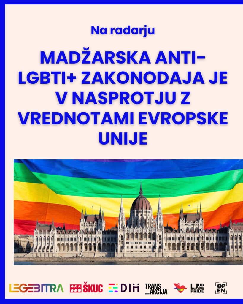 Sodišče Evropske unije je včeraj razsodilo, da madžarski zakon, ki naj bi bil namenjen zaščiti otrok, v resnici prepoveduje dostop do LGBTI+ vsebin ter dodatno stigmatizira necisspolne in neheteroseksualne osebe. S tem krši evropsko pravo in nasprotuje vrednotam spoštovanja človekovega dostojanstva, enakosti in spoštovanja človekovih pravic, na katerih temelji Evropska unija.